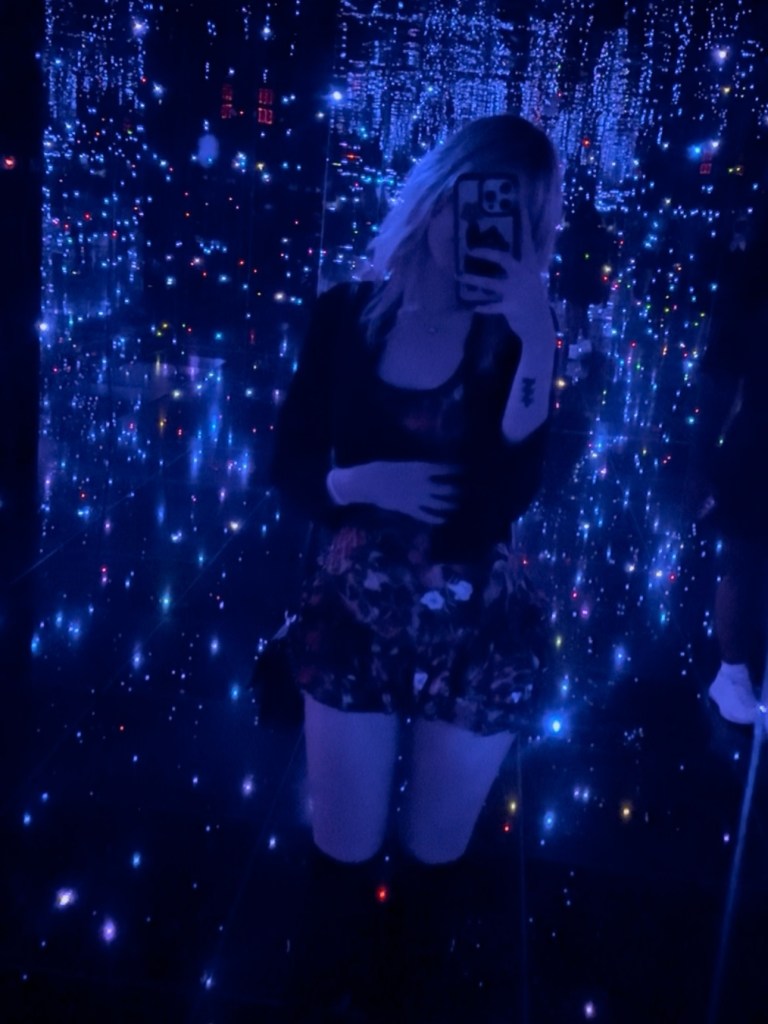 The fireflies infinity mirror room was created by Yayoi Kusama, and is actually titled “You Who are Getting Obliterated in the Dancing Swarm of Fireflies”. The installation is a room that is covered in mirrors, on the floor, ceiling, and walls. There are hundreds of LED light strings hanging from the ceiling, making it look like you are in a room with hundreds of fireflies, or in a galaxy filled with stars. It is SO freaking cool.