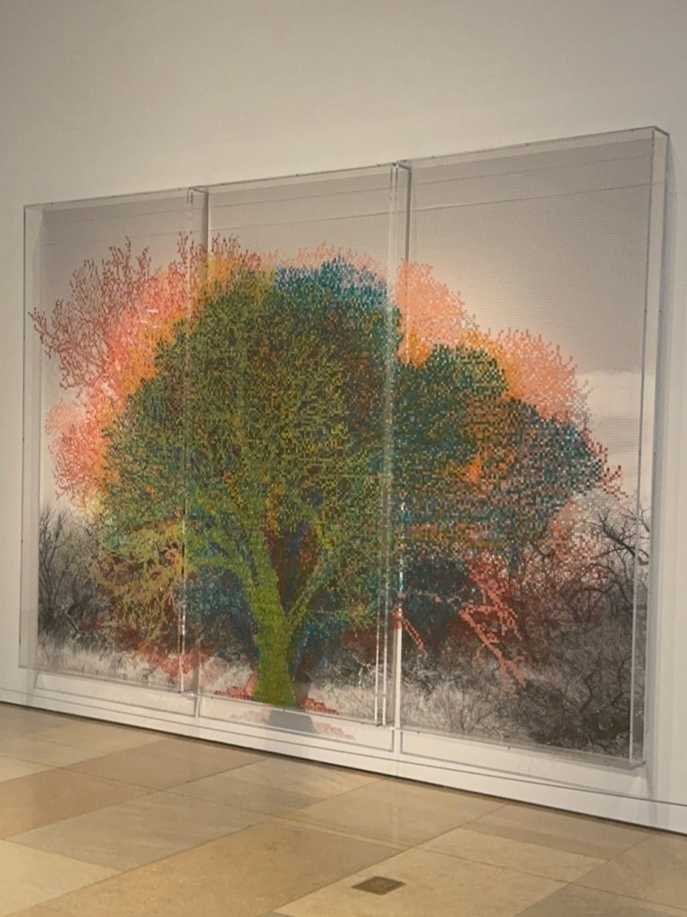The photo on the right, also by Charles Gaines, is just 1 piece out of several art pieces he has titled ‘numbers and trees’. There were about 6 or 7 different art pieces, with different trees and different colors. Each pieces has 3 layers to it. A photograph, an acrylic colored sheet, and a layer of “paint by numbers”. Seriously so creative and so freaking cool to see. My sister and I were amazed. You can a little read about his work here.