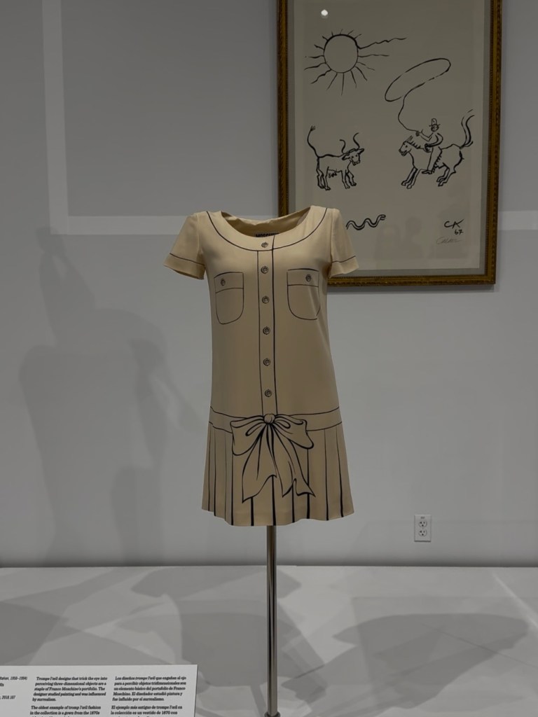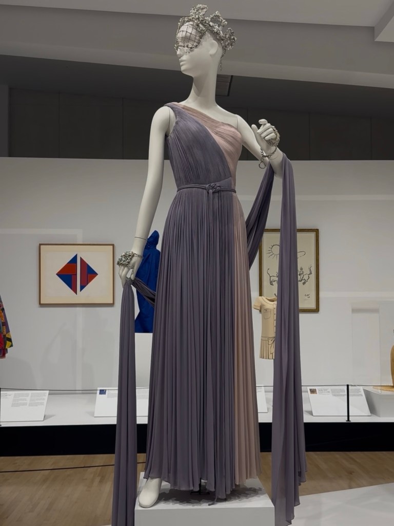 Below are two photos from the fashion collection, one being a beautiful draped purple and pink dress I fell in love with, and the other a dress with “doodled on” designs that I found super cool. It tricks the eye into thinking the dress has pockets and stitching that isn’t there.